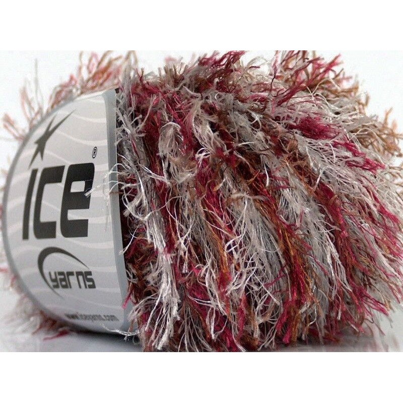 ICE Aspen Eyelash Colorful #33976 Wine White Silver Brown Eyelash Yarn 50gr 82 yards