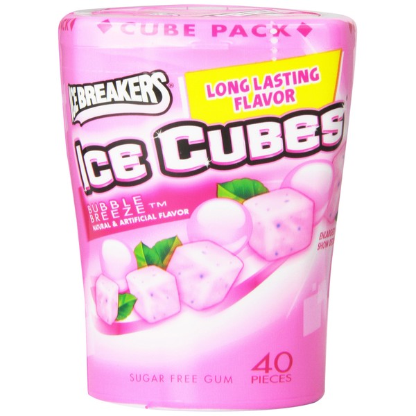 Ice Breakers Ice Cubes Sugar-Free Gum, 40-Piece Bottle Pack, Bubble Breeze (4...