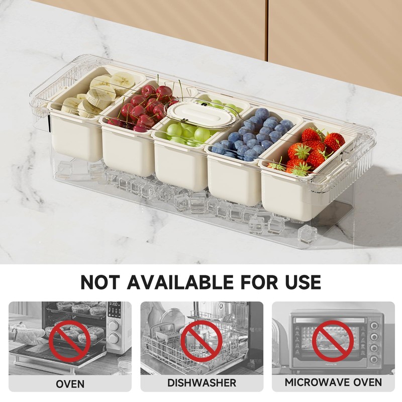 - Long lasting cooling, locking in fresh flavors: There is ample space at the bottom to accommodate ice cubes, and the chilled serving tray has a powerful cooling function with a sophisticated structure inside. The conditioning organizer is like creating an "ice and snow castle" for fruits, keeping them cool and fresh for a long time. Every bite of the fruit trays for serving for parties is a natural and sweet gift.