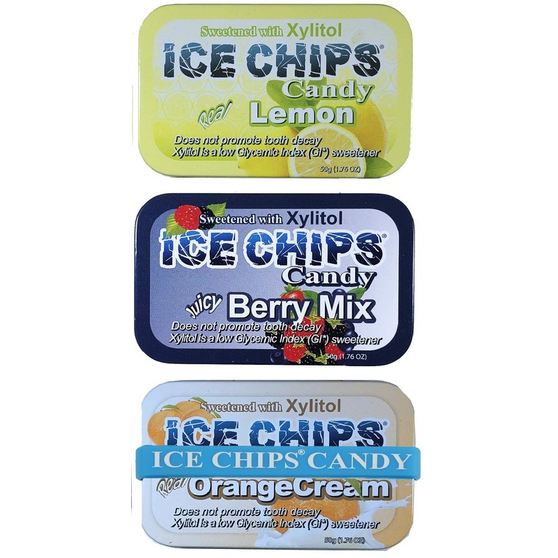 - ICE CHIPS CANDY is a Registered Trademark. NEW TIN DESIGN; Includes 2 each of Lemon, Berry Mix and Orange Cream; ICE CHIPS BAND Included in Factory-Wrapped Packaging