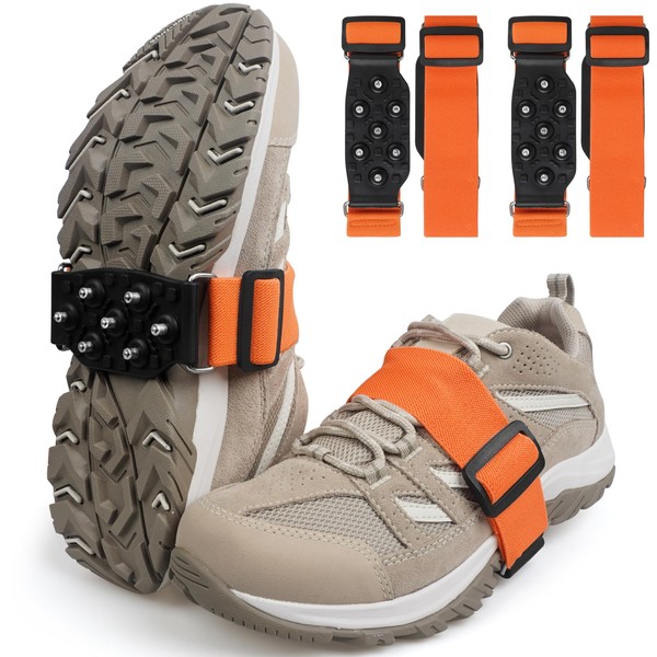 - 【ANTI-SKID TRACTION CLEAT】 Mid-Sole ice cleats feature 7 tungsten steel studs on each cleat pad, reliable and secure. Crampons for shoes providing excellent footing and traction on a wide variety of ice, snow, or other terrains, keep you safe and injury-free when walking on snow and ice.