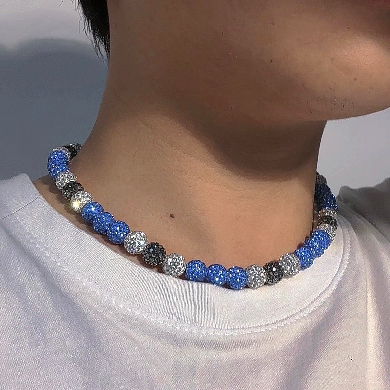 - Baseball Necklace handmade of 10 mm polymer clay ball full of rhinestone ,bling and sparky.