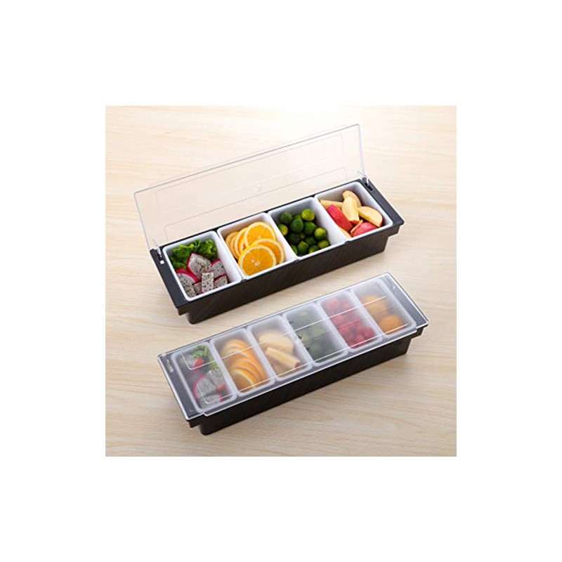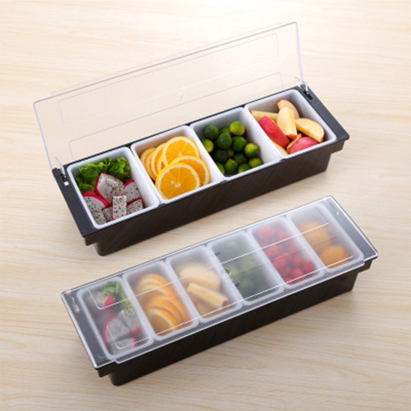 Ice Cooled Condiment Serving Container, 6-Tray Iced Cooled Garnish Station Serving Tray with lid for Home Work or Restaurant Salad Platter