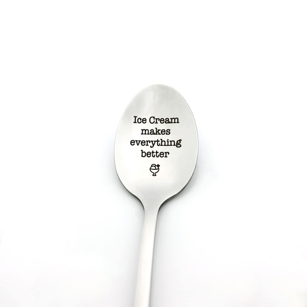 - ICE CREAM LOVER GIFTS: Perfect for the ice cream loving women man in your life. Express your love by sharing this spoon with the phrase " Ice Cream Makes Everything Better ".