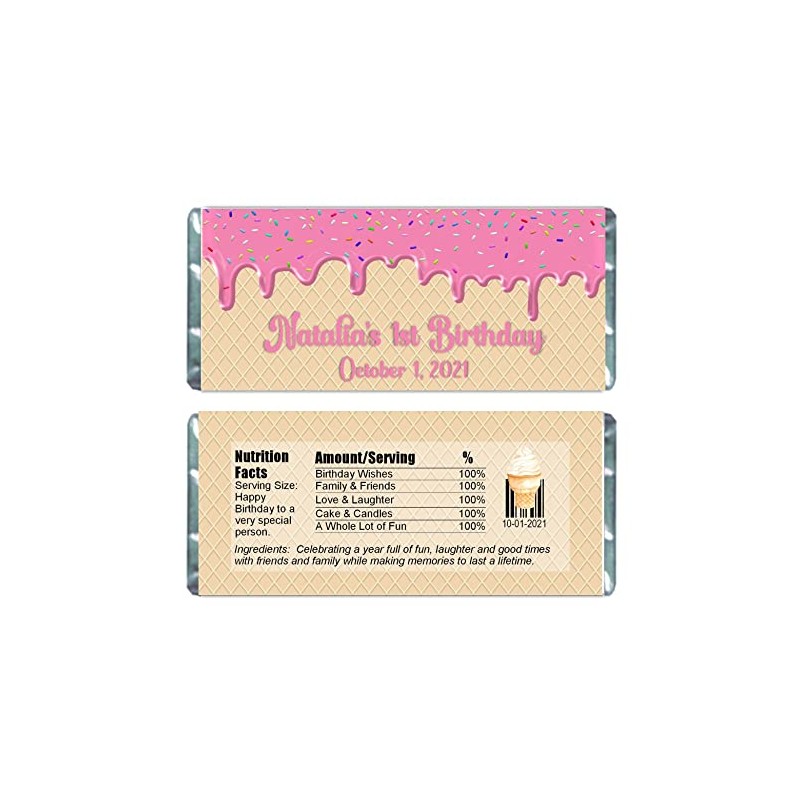 Ice Cream Party Candy Bar Wrappers, Personalized Birthday Favor, Custom Chocolate Bar Labels, Pack of 20 (Pink)