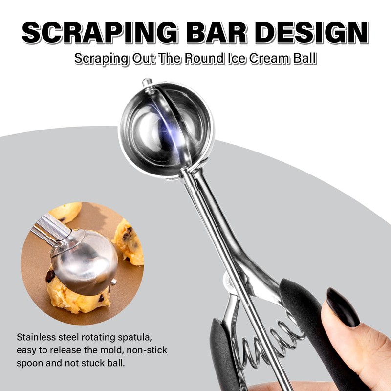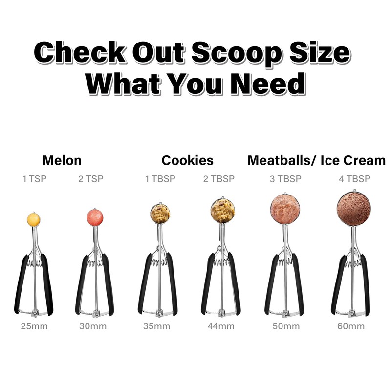 - đăVersatile UseăEasily make beautiful melon balls, sorbets, meat, fruits and delicious muffins, cupcakes, candy and many other round foods for healthy meals. It is suitable for scooping up and laying down ice cream, biscuit dough, meatballs, fruit balls, and also very suitable for holding pet food.