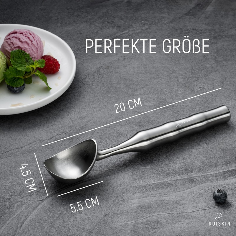 - Versatile ice cream dispenser for kitchen and dessert: not just an ice cream scoop: perfect for biscuit dough, falafel, melon balls or nut butter. This ice cream spoon is your versatile kitchen helper