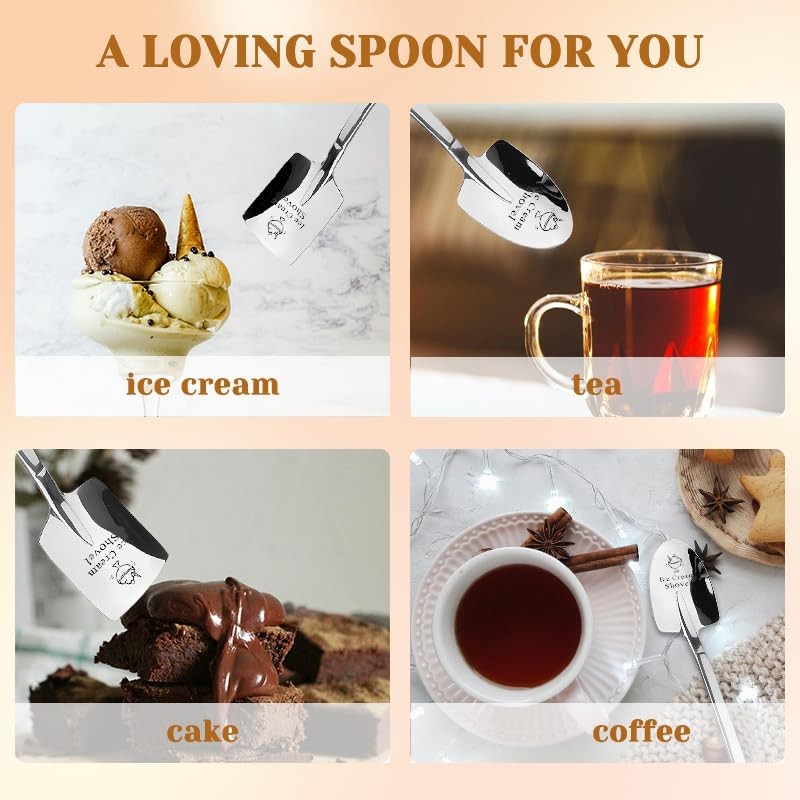 - Ice Cream Spoon Gift for Friends Female Male: To love someone is to eat a lot of food with her, imagine that you eat dessert, eat ice cream and enjoy the happy time together every day, the best friend ice cream shovel is the witness of your good time, great bestie birthday gifts for girls, long distance best friend friendship gifts for women, each time you both dive into a bowl of ice cream, these spoons will remind you of the joy of sharing sweet treats together