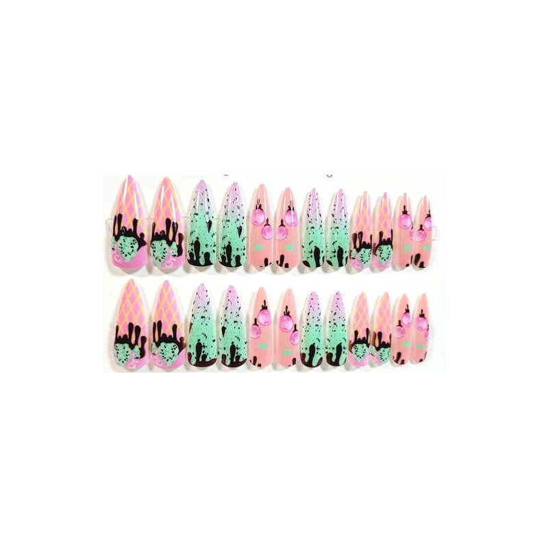 Ice Cream Sundae Glossy Stiletto Press-On Nails - 24 Pieces - Artificial Nail Kit