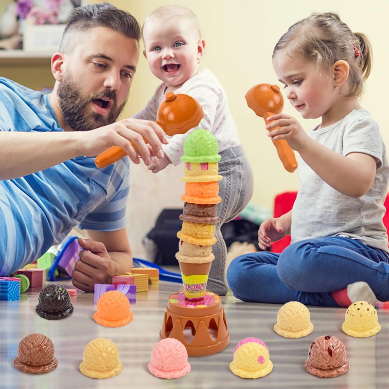 - Encourages Hand-Eye Coordination: Helps toddlers improve their fine motor skills while stacking fun ice cream towers game, making learning fun through playing this ice cream kids playset.