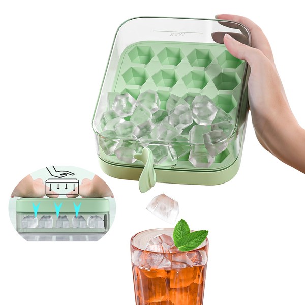 Ice Cube Tray with lid and Ice Cube Bin, Press Type Easy Release All Ice Cubes, Reusable 20 Ice Cube Mould for Freezer (Green)