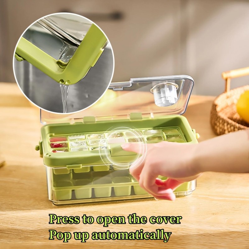 - 🍧【POP-UP UPPER COVER DESIGN】Innovative structural design, the upper cover can pop up with one click,This product is super useful that far exceeds the term 'ice cube tray'. The wider and soft silicone base makes it a breeze to pop out individual ice cubes or flex entire tray to release them all at once!