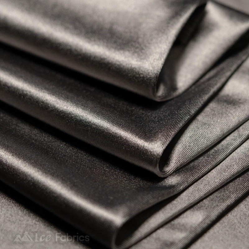 Ice Fabrics 4 Way Stretch Silky Spandex Satin Fabric by The Yard - 60" Wide Shiny Satin Spandex Fabric for Dresses, Active Wear, Yoga Pants, Table Cloth - Thick and Heavy - Dark Grey - 1 Yard