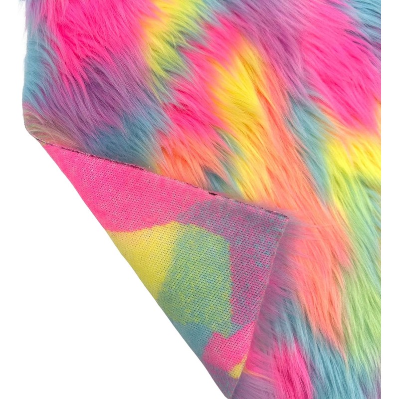 Ice Fabrics Faux Fur Fabric Squares - 10x10 Inches Pre-Cut Craft Fur - Shaggy Mohair Fabric for Costumes, Apparel, Rugs, Pillows, Decorations and More - Pastel Rainbow - 10"x10"