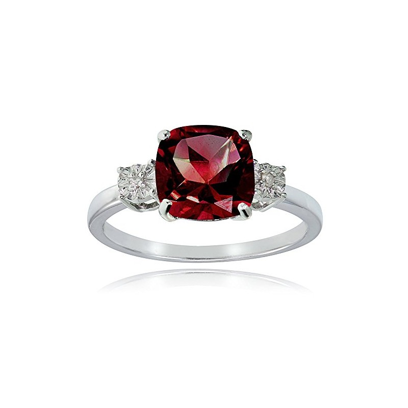 Ice Gems Sterling Silver Created Ruby Red and Cushion-cut Ring, Size 7