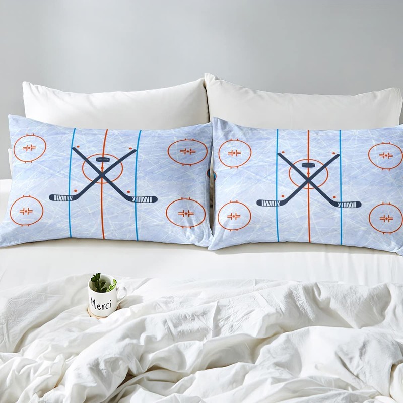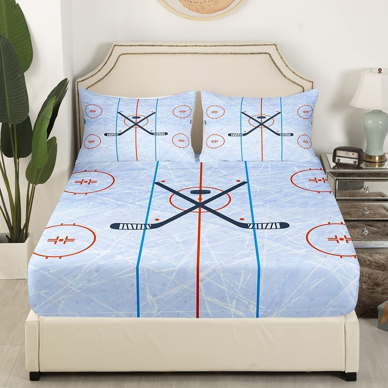 Ice Hockey Kids Sheet Full Size,Hockey Stadium Rink Bedding Set for Boys Girls Adults,Winter Event Ball Games Lovers Modern Stylish Bed Sheet Set 4pcs(Fitted Sheet + Flat Sheet + 2 Pillowcases)