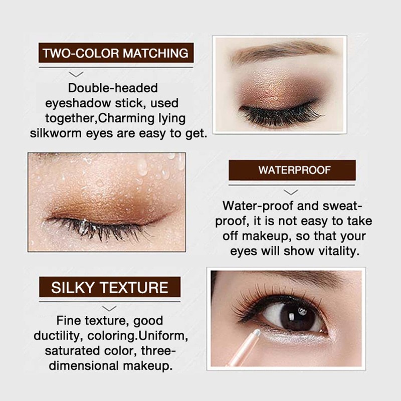 - 【Uses】: The glitter gradient eyeshadow stick is rich in color, high color rendering, soft and natural application, no roughness, can modify eye shadow, lying silkworm, highlight and other parts at the same time.
