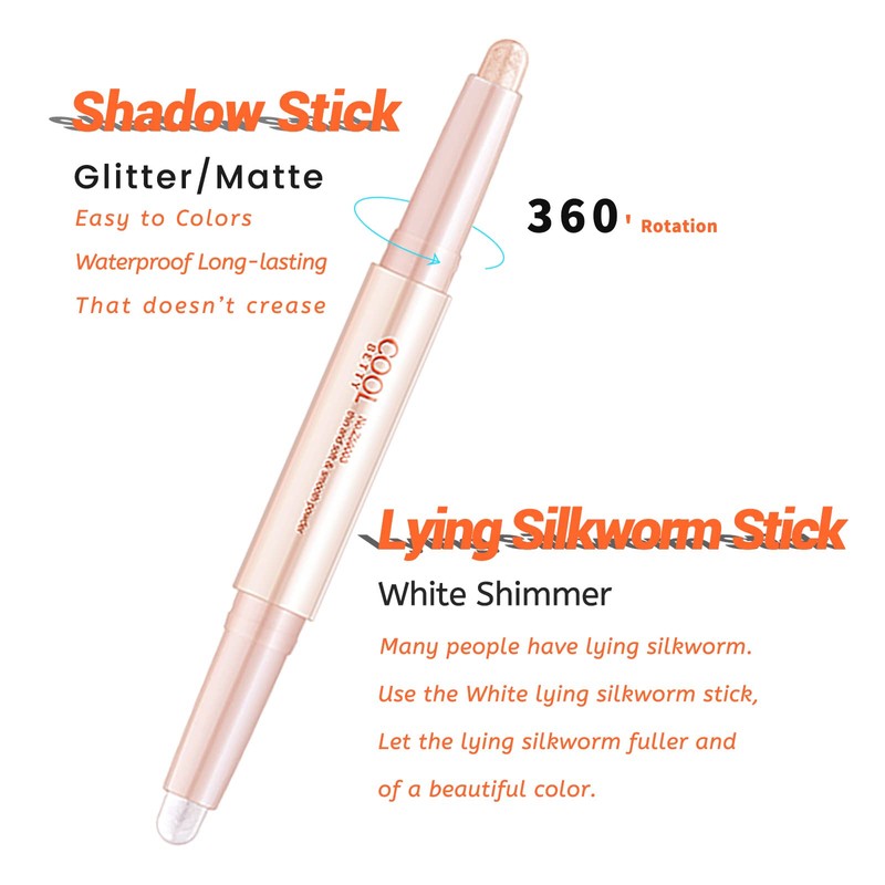 - 【Unique Look】: The glitter eyeshadow stick is double-ended design, it is a 2-in-1 eyeshadow stick, which consists of 2 shimmering shades, you can choose the right color according to different occasions.