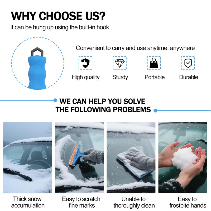 Our Comfort and Control handle ensures your hands stay warm and comfortable while using the snow scraper for car.ice scraper for freezer can Remove snow and ice in a snap without freezing your hands.