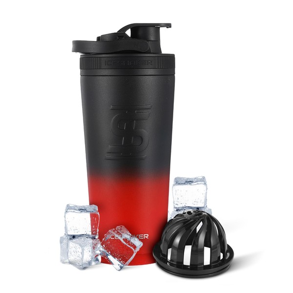 Ice Shaker Ice Shaker Insulated Stainless Steel Shaker Bottle | 26oz, Red/black | Cold for 30+ Hours | Insulated Cup with Twist-on Agitator | Odor-Free Bottle for Protein Shakes, Water, Smoothies, Cocktails