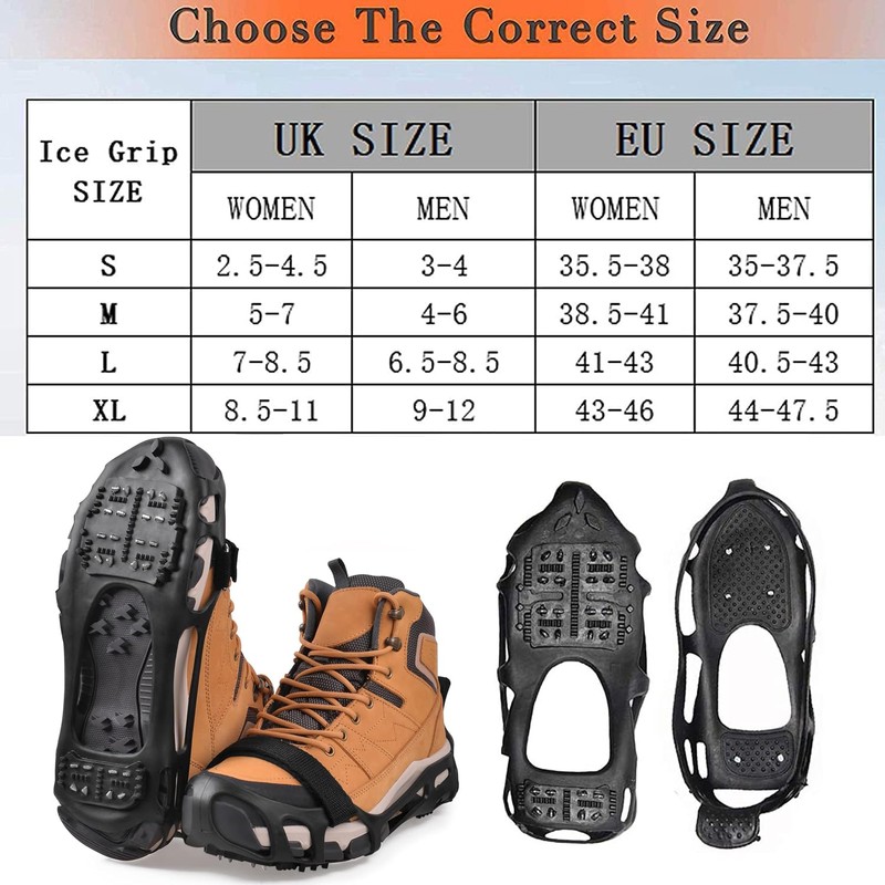- Reduce the risk of injury from slips and falls when walk on ice, snow, mud and wet grass or other poor conditions.Shoes not included