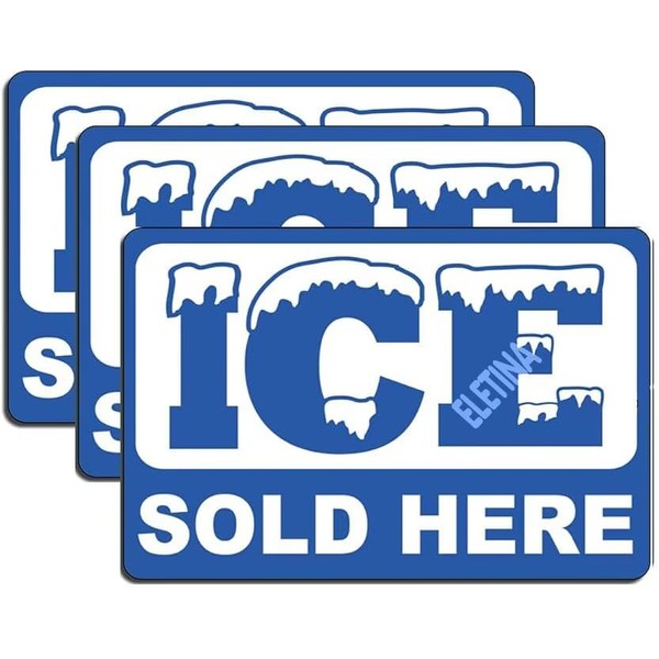Ice Sold Here Sign Wall Decor Warning Plaque 8x12 Inch Aluminum, Tin Sign 3 Pack