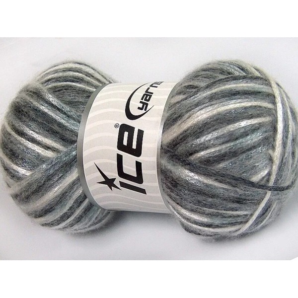 Ice Yarns Glam Universe Ice #64590 Greys, White, Black 100gr 250yd Shiny Fuzzy Yarn