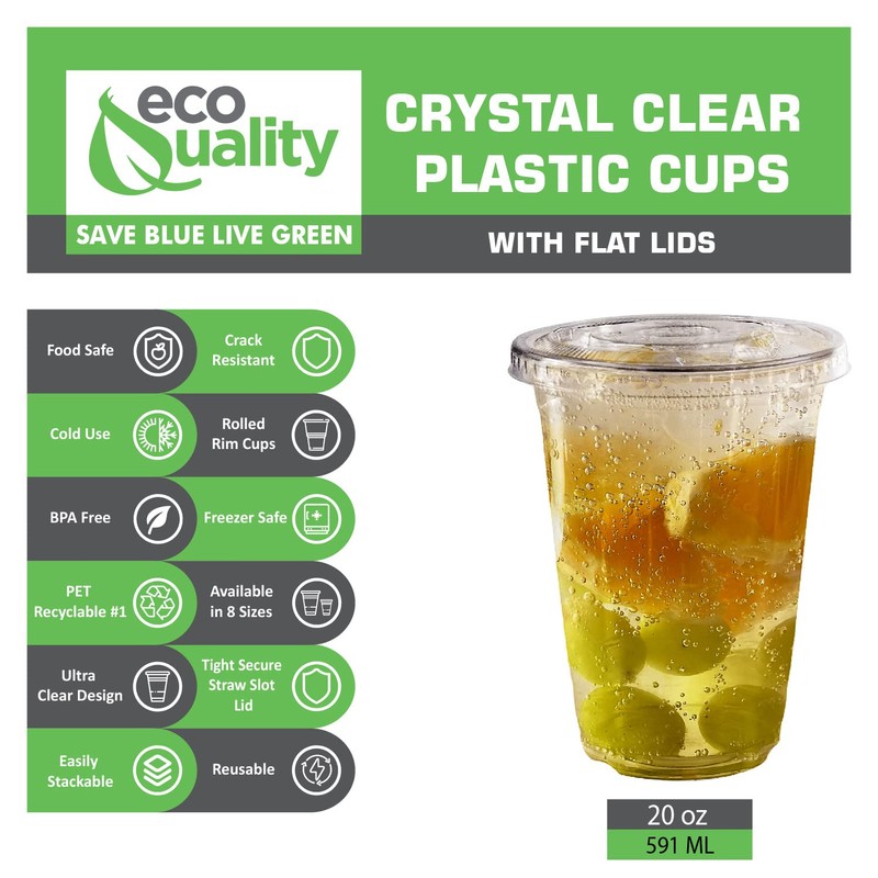 - Our 20oz Cold Cups and Lids are made of PET Plastic. PET Plastic Cup Technology insures that these Plastic Cups are Crystal Clear,Impact, Durable and Crack Resistant.