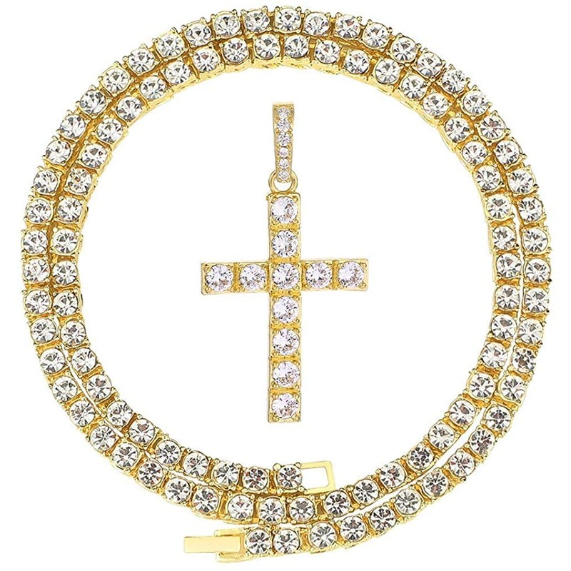 - Iced Out Cross Pendant on Tennis Chain for Men or Women - Bling'ed Out Hip Hop Jewelry on Blast! - Gold or Silver and Size Your Choice - TN001 (18", Cross Gold)