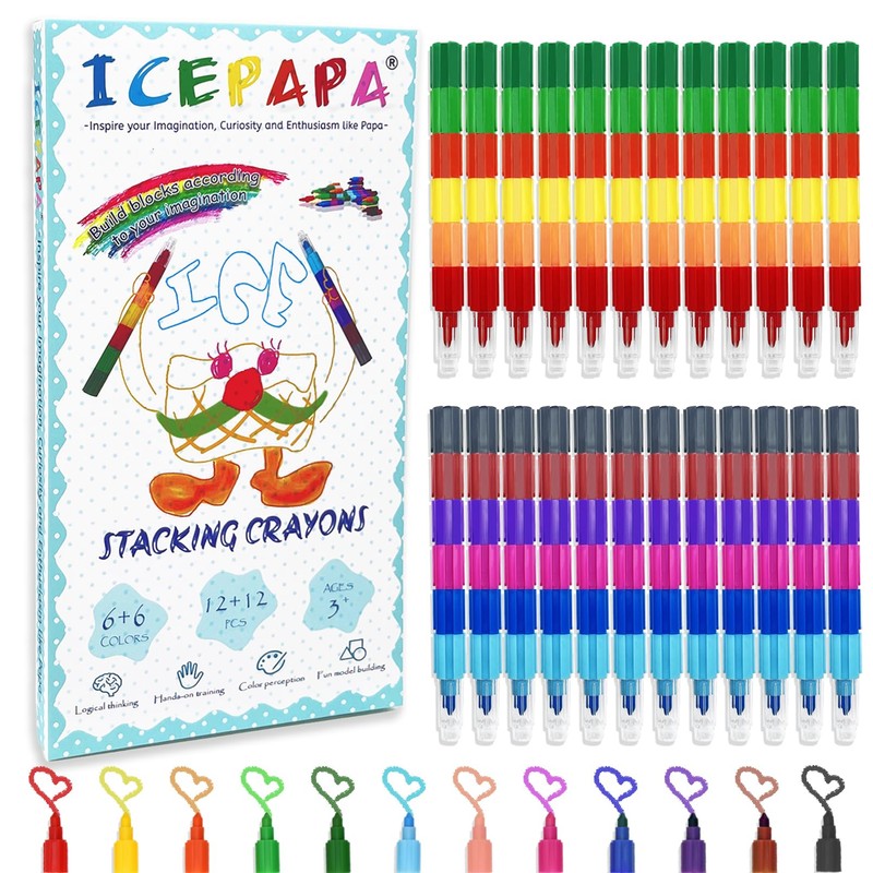 - Interesting design: the ICEPAPA stackable coloured pencils children can be adjusted to the desired length to give children a better grip when drawing. The unique pen holder design prevents the pens from rolling off the table and allows children to build creative models to develop their practical skills and imagination.