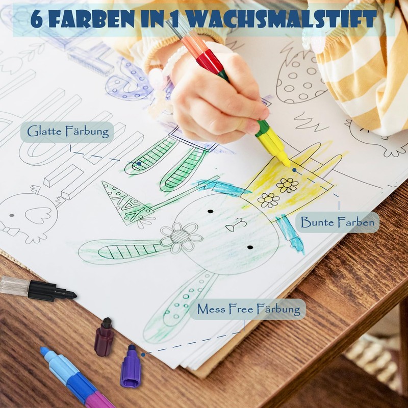 - Wide colour palette: you will receive 24 wax crayons in two different styles, 12 pens per style. Each wax crayon consists of 6 small independent wax crayons in different colours, with a total of 12 vibrant colours to inspire more artistic expression for children. Multiple colours in one wax crayon reduce confusion and make it the perfect companion for home, school or on the go!