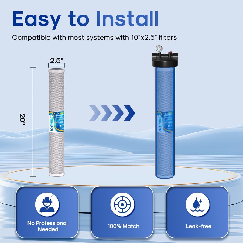 - Compatible Size - This filter can be used in any standard 20” x 2.5” whole house filtration system, and is compatible with: C1-20, EP-20, HX-CB-25-2010, SP-P5-20, NCP-20, F3WCB32 . ICEPURE is an independent brand.