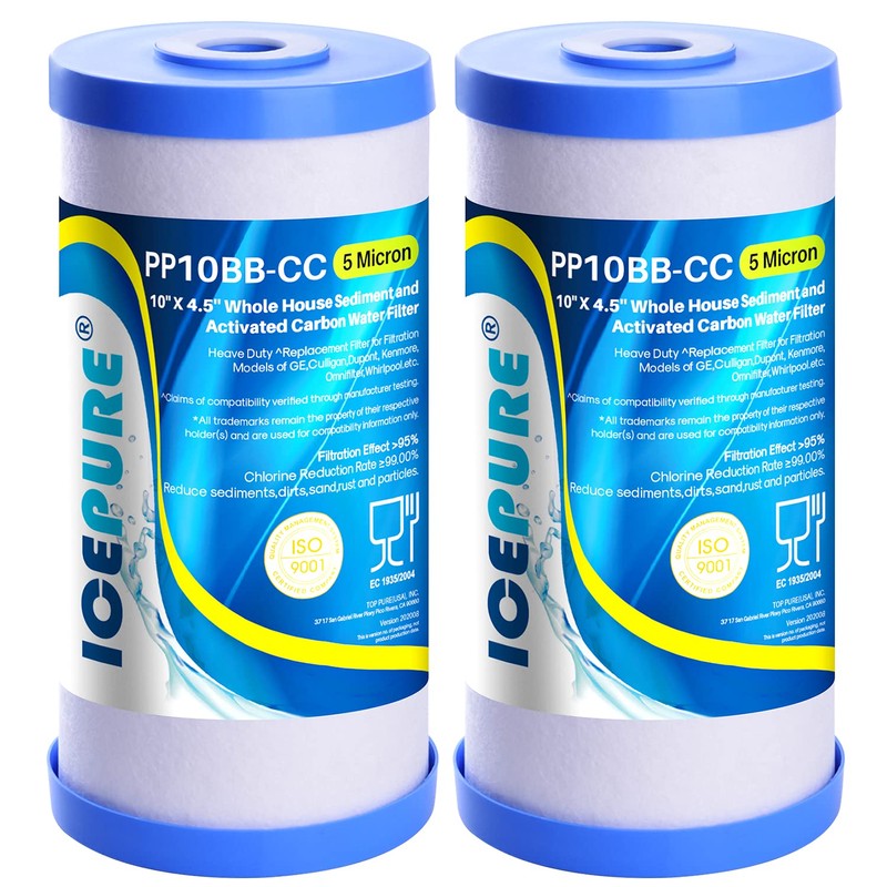 - ๐๐๐๐ข๐๐ข๐๐ง๐ญ ๐ ๐ข๐ฅ๐ญ๐ซ๐๐ญ๐ข๐จ๐งโ ICEPURE Whole House Heavy Capacity Sediment and Activated Carbon Water Filters combine two filtration functions, not only reducing particles, sediment, rust, and limescale but also reducing 99% of Chlorine in water, making it taste great.