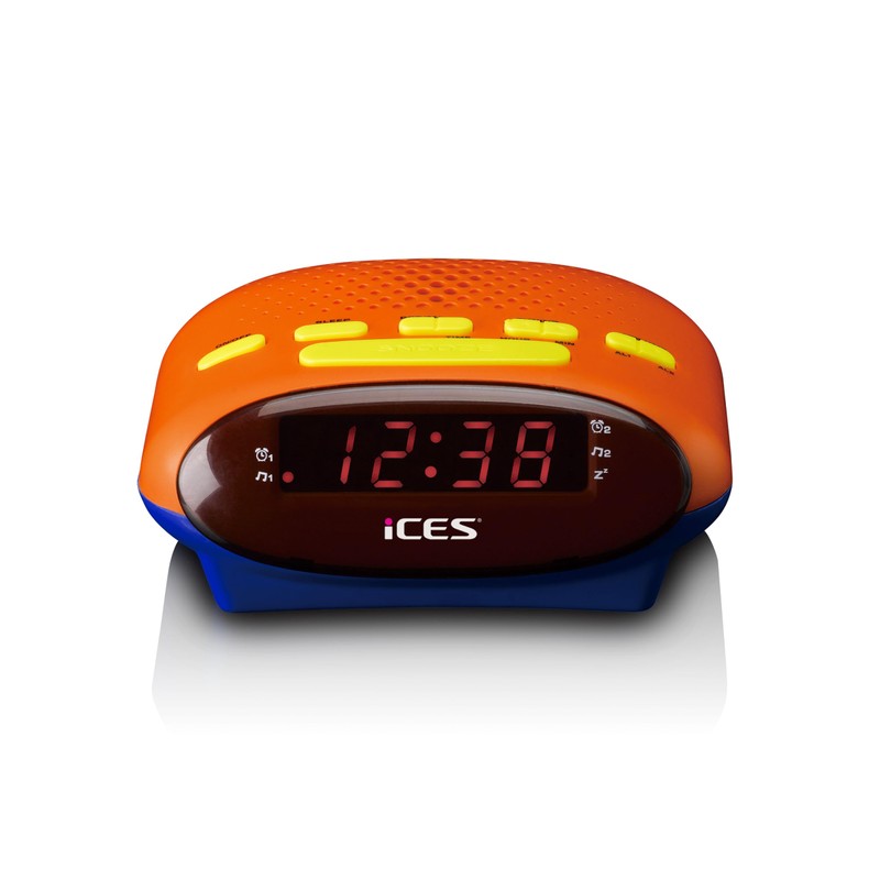 iCES ICR-210KIDS Clock Radio - Alarm Clock Radio for Children - PLL FM - Snooze Function - Sleep Timer - Power Reserve - Blue/Orange