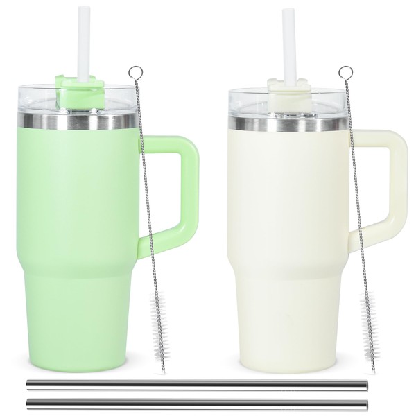 - 【Packge Include】: Package includes 1pc white and 1pc green 14oz tumbler, 2pcs screw lids, 2pcs plastic straws 2pcs stainless steel straws, and 2pcs straw brushes.