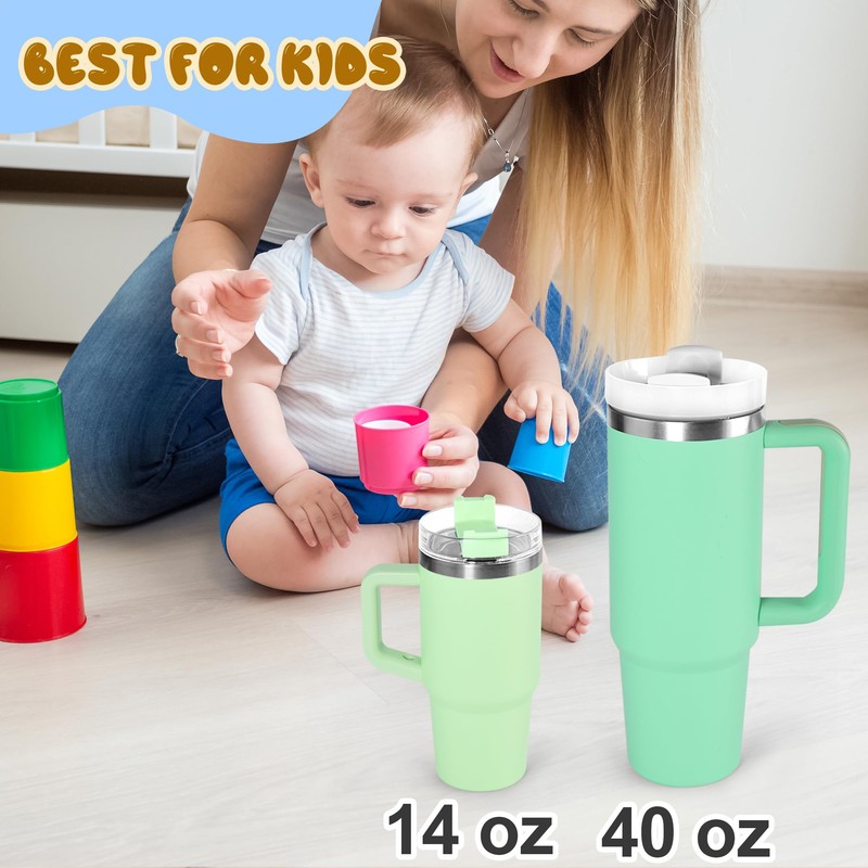 Icesip 14 Oz Tumbler with Handle and Straw for Kids, 2Pack Insulated Cup for Kids, Travel Coffee Mugs for School Outdoor Travel, White&Green
