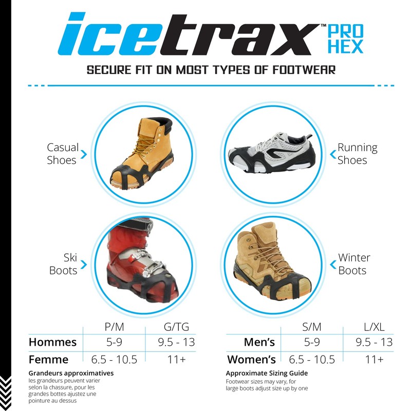 ICETRAX Pro HEX Grip Winter Ice Cleats for Shoes and Boots - Ice Grips for Snow and Ice, StayON Toe, Reflective Heel L/XL (Men: 9.5-13 / Women: 11+)