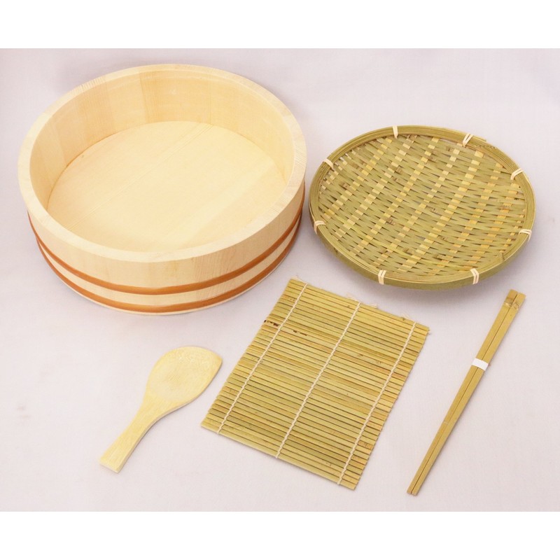 Ichihara Woodworking Hand-rolled Sushi Set, Sushi Tub, 10.6 inches (27 cm), 3 Combinations, P Diameter 10.6 x Height 3.2 inches (27 cm) x Height 3.2 inches (8.2 cm), Beige