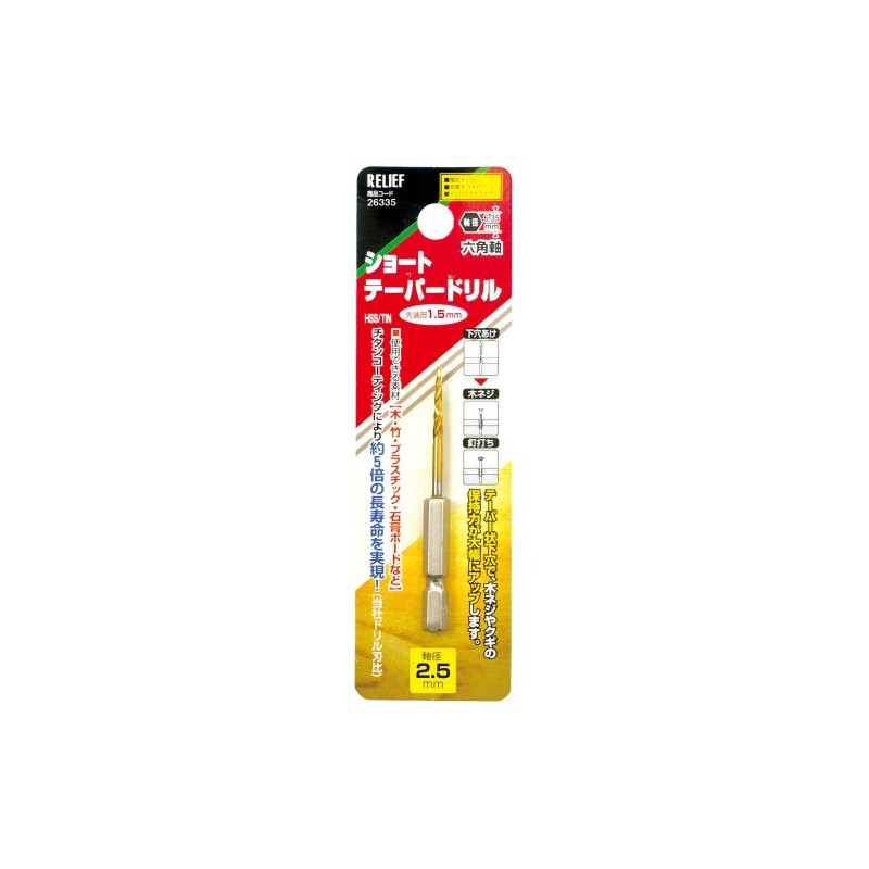 Ichinen Access (Formerly Ichinen Mitsutomo) RELIEF Woodworking Drill, Hexagonal Shaft, Short Tapered Drill, 0.1 inch (2.5 mm), 26335 HSS+ Titanium Coating