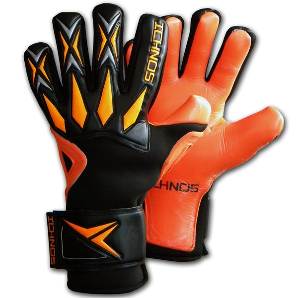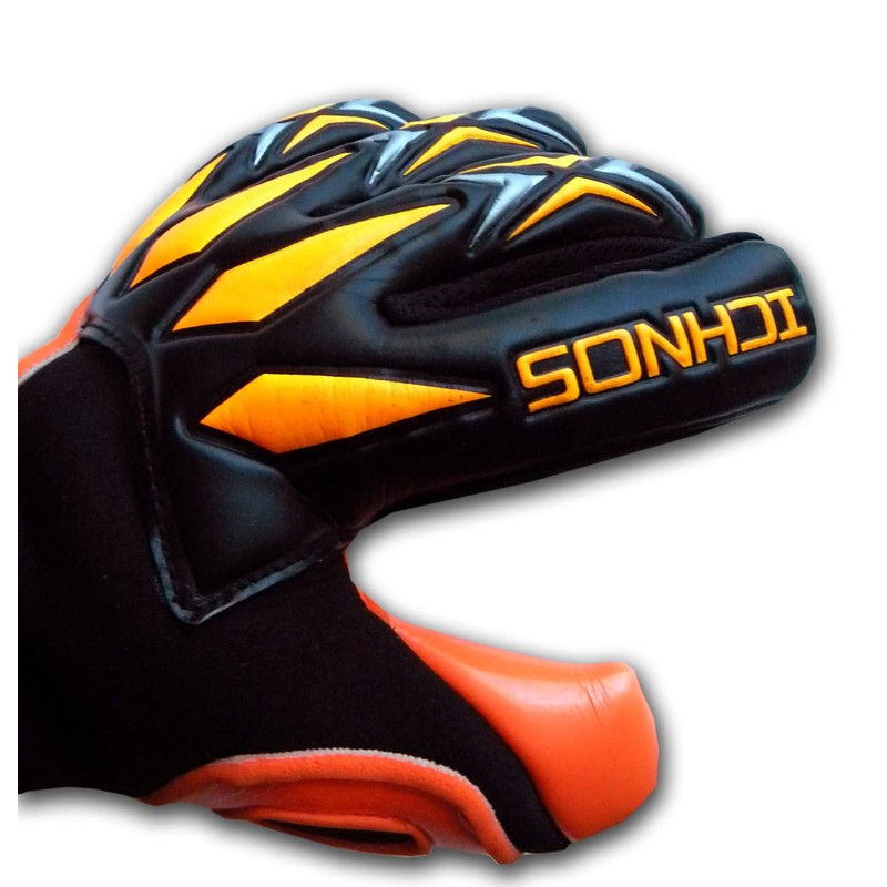 ICHNOS Defract Pro adult size football extended palm finger saver goalkeeper gloves Black/Orange/Silver (8)
