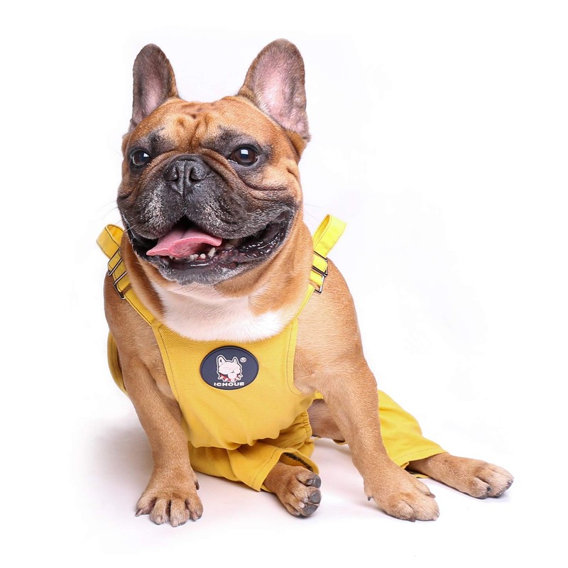 iChoue Cute Dog Diapers Suspenders for French Bulldog Frenchie Pug English Bulldog Female in Heat Cycle Yellow - Medium with 2pc Diapers