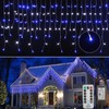 Icicle Lights Outdoor - 40 FT 432 LED Icicle Christmas Lights with 81 Drops, 8 Modes Icicle String Lights with Remote & Timer, Waterproof Fairy Lights for Roof Patio Tree House Decor, Blue & White