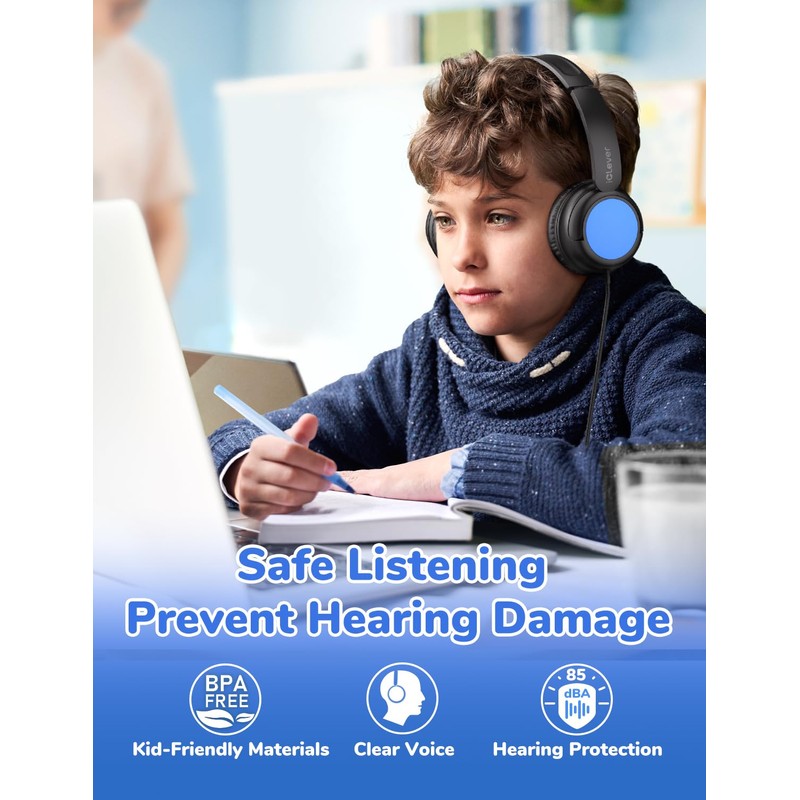 - 【Safe Sound Refiner Tech】These headphones are equipped with iClever Sound Refiner technology, which effectively limits the sound to below 85dBA and reduces the high-frequency (2-4KHz) volume that can cause hearing damage. For ultimate safety, these headphones are made from child-safe and friendly materials that are CPC-certified and do not contain BPA, ensuring they are gentle on children's skin.