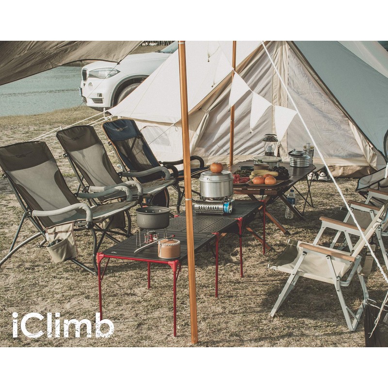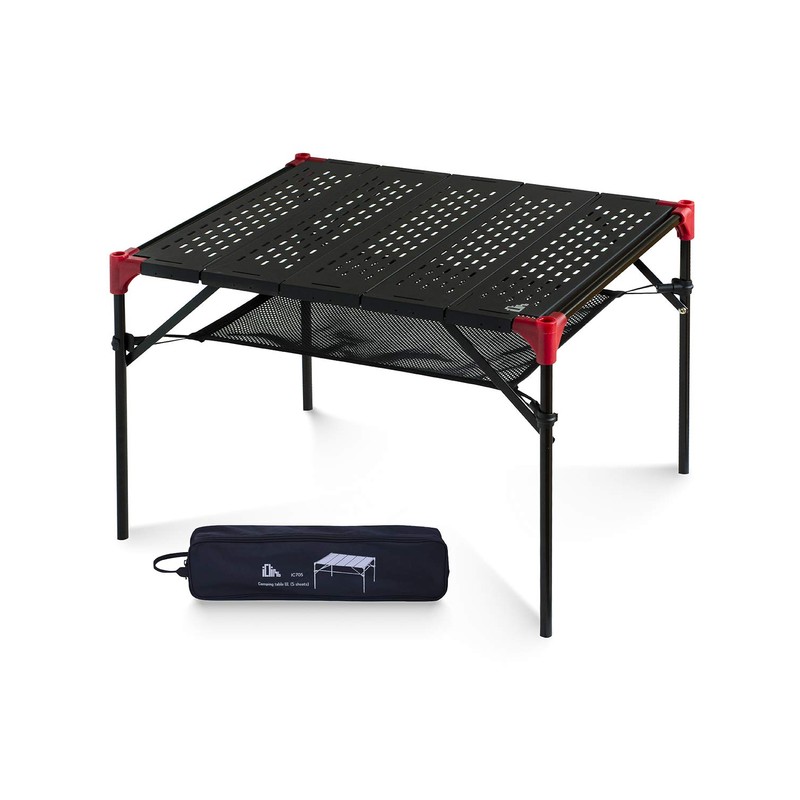 iClimb Extendable Folding Table Large Tabletop Area Ultralight Compact with Hollow Out Tabletop and Carry Bag for Camping Backpacking Beach Concert BBQ Party, Three Size (Black - L)