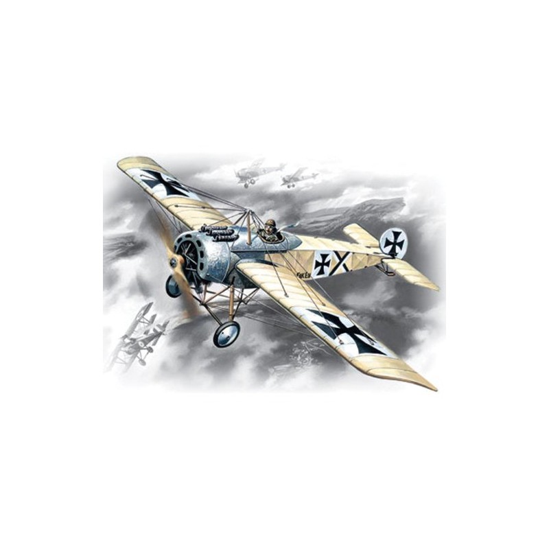 The Fokker E.IV fighters entered service in March 1916. The famous German WWI aces Oswald Boelcke and Max Immelmann had air victories on the Fokker E.IV. Luftstreitkrafte tri-gun monoplane fighter. Kit has 'fabric-on-frame' effect exterior, detailed cockpit, twin-row radial engine, injection-molded windscreen, intricate undercarriage and rigging diagrams.