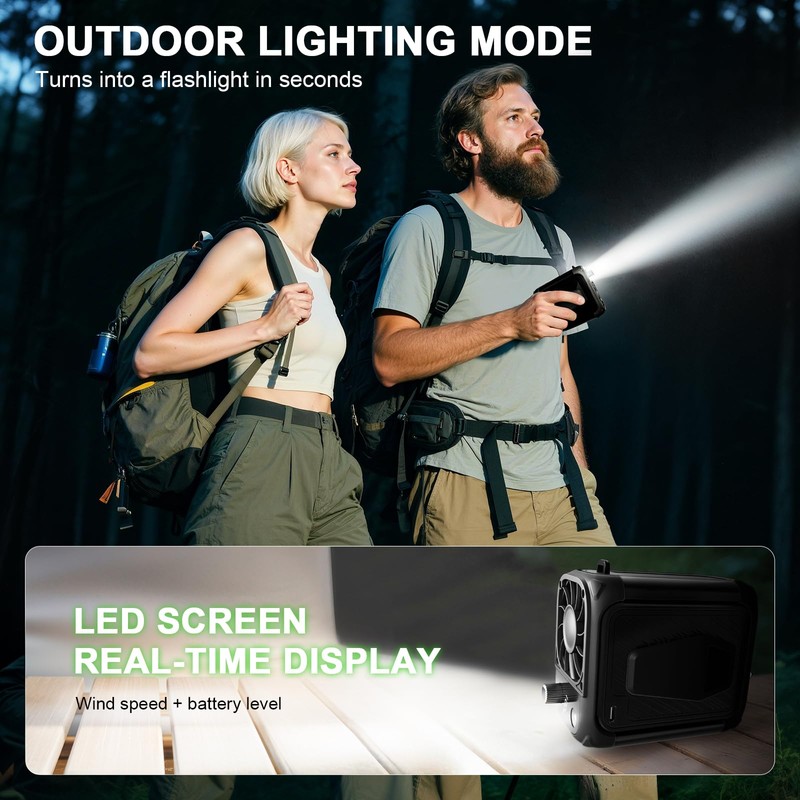 - [LED Intelligent Interaction|All-weather safety guarding] Belt fan clip on waist portable cooling fan, High-definition screen display real-time monitoring power / wind speed, built-in ultra-bright LED lights to meet the night hiking lighting. Intelligent chip automatically adjusts waist fan energy consumption, low-grade endurance up to 25 hours, Type-C interface to support the side charging and use, large capacity battery, the second into an outdoor charging treasure, outdoor workers all day without power!