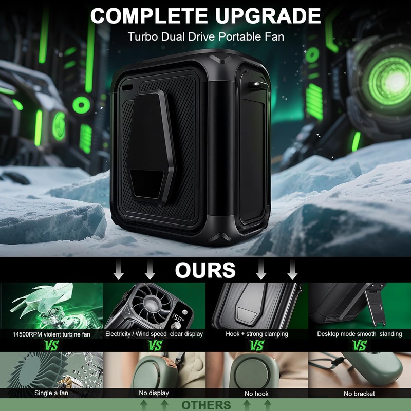 - [4-in-1 Wearable System|Multi-scene Intelligent Cooling] Innovative waist clip fan design, can be turned into a neck-mounted body fan, handheld fan or desktop fan in seconds. belt clip fan structure fits perfectly into work pants/sports belt, hidden clip design under shirt fan, to meet the needs of construction workers/chefs in the high temperature environment of the hidden cooling, outdoor work can also be kept cool