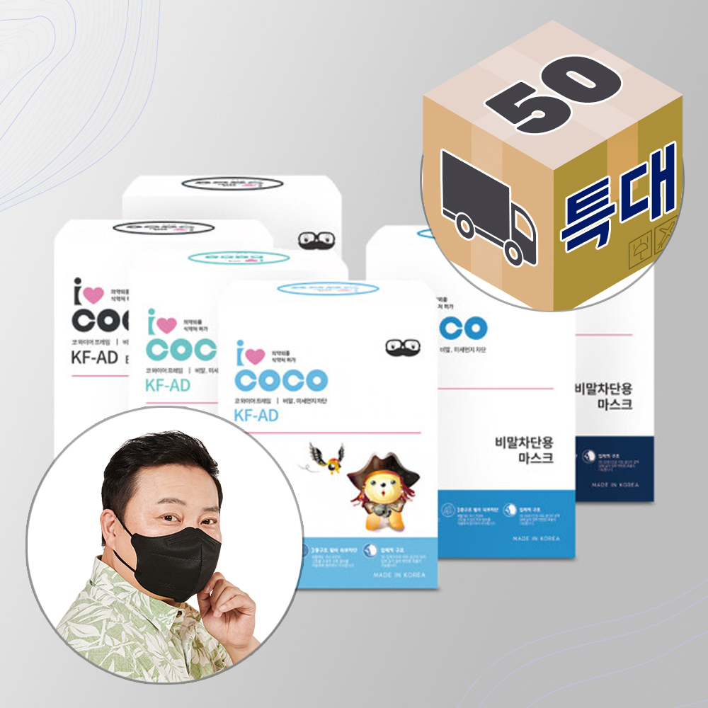 본 상품은 '아이코코 KFAD 편한 새부리 마스크 특대-블랙 50매'가 배송됩니다.