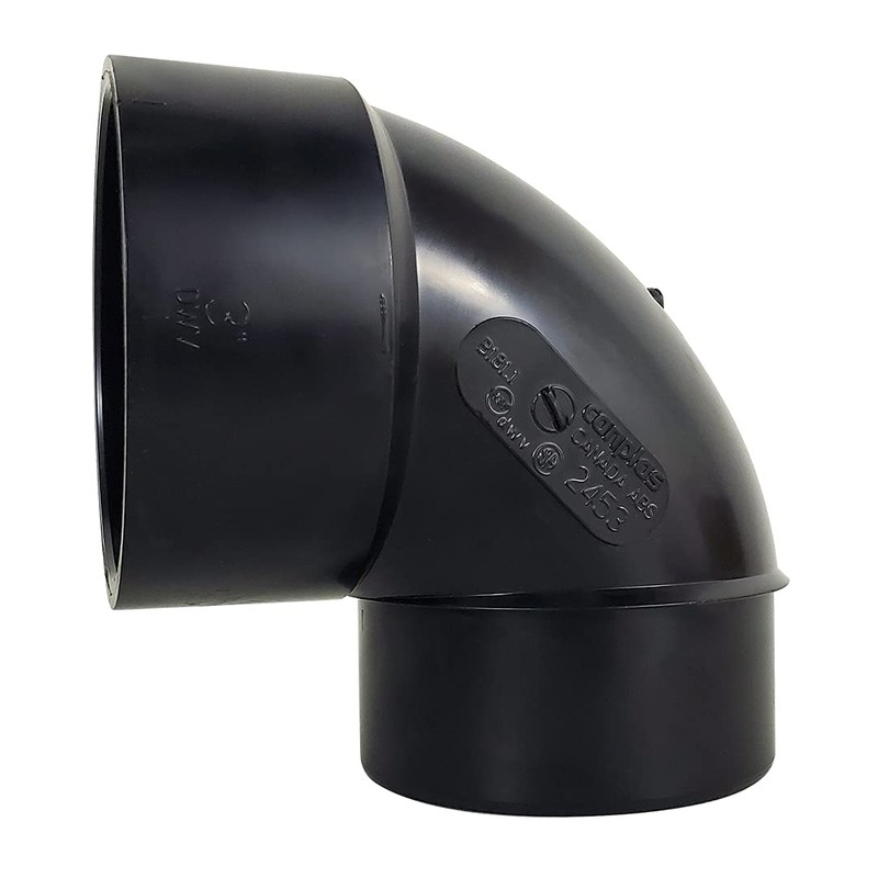 ICON 14842 Fitting, ABS, 90` Elbow, Short Street, 3", Spigot-Hub