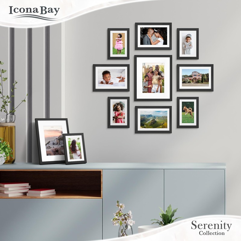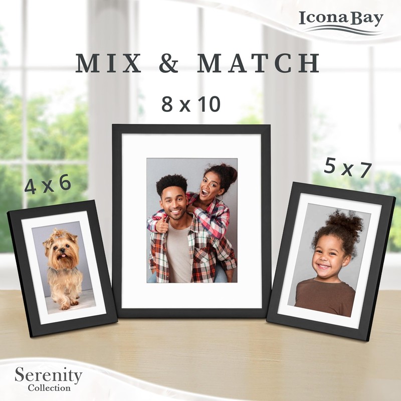 Icona Bay 4x6 Picture Frames w/Removable Mat for 3x5 Photos (Black, 10 Pack), Sleek Modern Style Frames, Table Top or Wall Mount, Serenity Collection